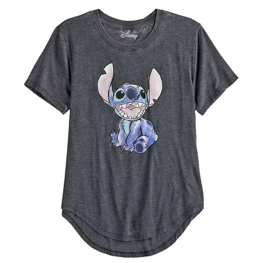 Collar metálico de color plateado con dije de Stitch agarrandose de una gema azul.